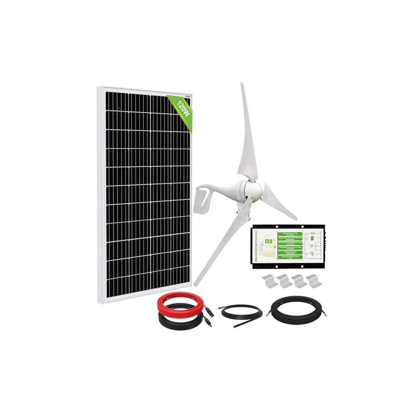 Especificaciones: ECO-WORTHY 500WKit de energía eólica solar: Turbina de viento de 400 W Panel solar de 100 W fuera de la red Carga de batería de 12 voltios