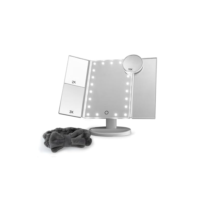 🔄 DISEÑO TRI-PANEL: VISIBILIDAD AMPLIA con diseño tri-panel. El espejo central y los laterales ajustables te permiten ver todos los ángulos de tu rostro, asegurando un maquillaje uniforme y perfecto.