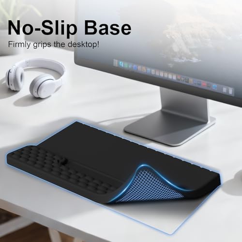 Non-Slip Bottom:Featuring an anti-skid silicone base on the bottom, this wrist keyboard support stays firmly in place on your desk. Even during intense typing or gaming sessions, the keyboard riser with wrist rest keeps steady and secure, ensuring ultimate stability with zero wobble.compatible with all sorts of desktop surfaces in metal, wood, glass, or plastic, etc