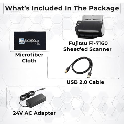 Especificaciones: Escáneres Fi-7160 para computadoras – Escáner de documentos de 600 DPI, con cable de alimentación de 24 V, cable USB 3.0 y paño de limpieza de microfibra (renovado)