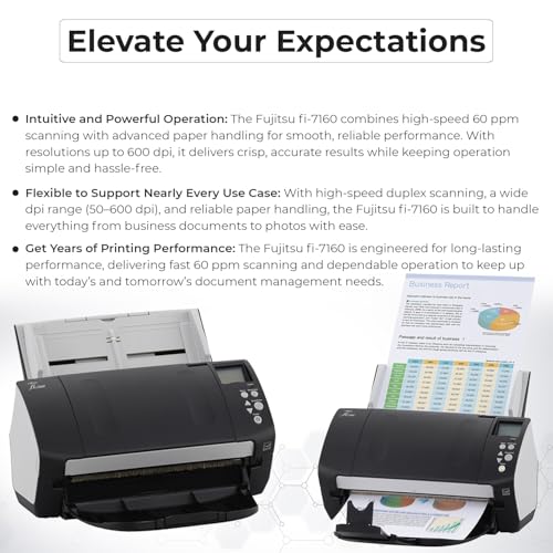 Escáneres Fi-7160 para computadoras – Escáner de documentos de 600 DPI, con cable de alimentación de 24 V, cable USB 3.0 y paño de limpieza de microfibra (renovado)