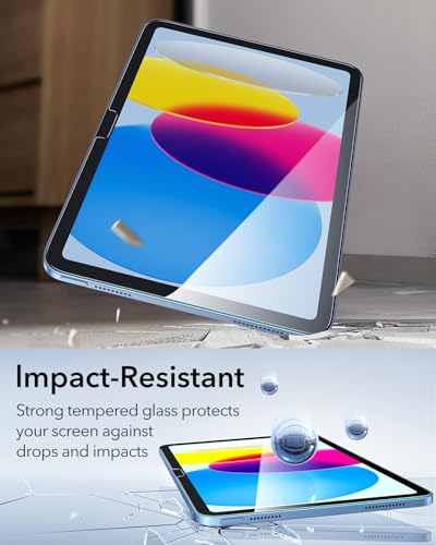 Especificaciones: ESR Paquete de 2 protectores de pantalla para iPad A16 de 11ª/10ª generación (11 pulgadas/10.9, 2025/2022), protector de película de vidrio templado 9H con marco de alineación, antiarañazos, sin