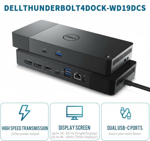 Especificaciones: Estación de acoplamiento Dell WD19DCS, base de rendimiento, pantalla 4K, estación de acoplamiento Dell de 240 W con puerto HDMI/Dual DisplayPort, soporte para monitor doble, paquete con cables HDMI/DP