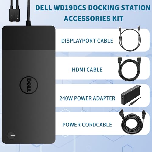Estación de acoplamiento Dell WD19DCS, base de rendimiento, pantalla 4K, estación de acoplamiento Dell de 240 W con puerto HDMI/Dual DisplayPort, soporte para monitor doble, paquete con cables HDMI/DP