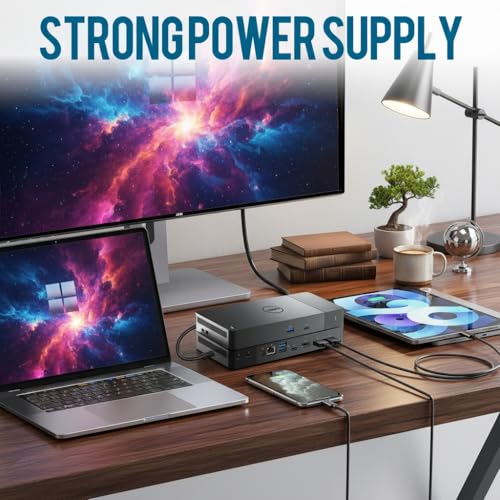 Ultimate Connectivity Hub: Experimente la comodidad de los puertos USB-C duales que transportan energía, datos y video en un solo enlace, lo que facilita la conexión de todos sus periféricos y optimiza su flujo de trabajo, independientemente de su dispositivo