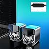 ♪ 【Diseño único】: Exquisita tapa antipolvo de aluminio, artesanía de panel esmerilado, diseño pequeño y portátil, fácil de transportar. Cabe perfectamente debajo de la pantalla o en los laterales del ordenador. ¡Este sistema de parlantes 2.0 es ideal para computadoras, laptops y notebooks!