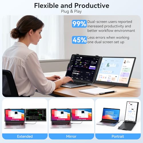 【200% auge de productividad】Las pantallas duales aumentan la eficiencia del flujo de trabajo en un 200% – nuestra pantalla portátil para portátil hace que sea portátil. Alterne instantáneamente entre los modos extendido/duplicado/duplicado/vertical/paisaje: los codificadores depuran mientras ven la documentación, los comerciantes monitorean múltiples gráficos, referencia de los diseñadores mientras crean. La funcionalidad perfecta de arrastrar y soltar en pantalla cruzada elimina la fatiga Alt+Tab. para suites de Office, IDE de codificación, software creativo: su flujo de trabajo se vuelve más inteligente desde la primera conexión