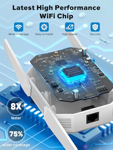 Amplificador de señal WiFi Extensor para el hogar: Amplíe el WiFi de alto rendimiento con 4 antenas externas para llegar a áreas difíciles de cubrir y garantizar la mejor recepción de señal.