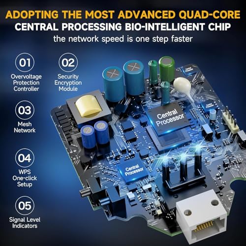 Excelente rendimiento: nuestro extensor WiFi, con 2 antenas y 4 FEM, ofrece velocidades asombrosas. Atraviesa paredes/pisos para eliminar puntos muertos, lo que permite juegos sin retrasos, transmisión fluida 4K/8K y videollamadas estables. No más conexiones irregulares: asegura una señal fuerte en todas partes, convirtiendo redes inconsistentes en WiFi confiable y de alto rendimiento para tu uso diario.