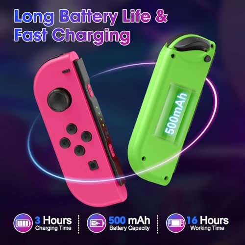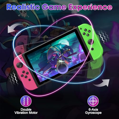FFSTARYM Compatible with Nintendo Switch Controller, Left/Right Joypad for Switch/Lite/OLED, with/Dual Vibration/Motion/Wake-up/Screenshot (Pink-Green)