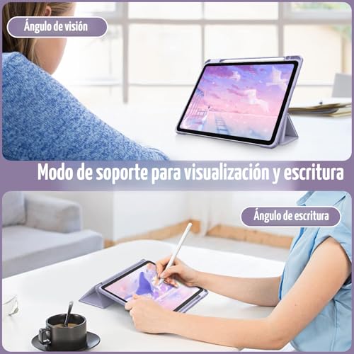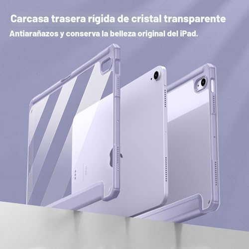 Especificaciones: Fintie – Funda híbrida delgada para iPad Air 4ª generación modelo 2020 (soporte para lápiz incorporado), a prueba de golpes y con carcasa trasera transparente, función de activación/hibernación automáticas, para iPad Air 4 de 10.9 pulgadas, color púrpura lila
