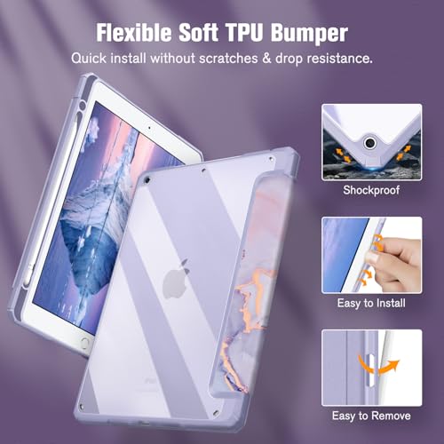 Fintie Funda híbrida delgada para iPad de 9ª / 8ª / 7ª generación (2021/2020 / 2019) de 10.2 pulgadas – [Soporte para lápices incorporado] a prueba de golpes con carcasa trasera transparente (mármol