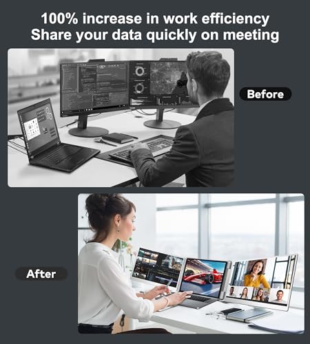 MONITOR TRIPLE Y 300% EFICIENTE: El extensor de pantalla portátil FOPO de 14″ agrega 2 nuevas pantallas al trabajo diario de tu laptop, abre fácilmente múltiples ventanas y realiza múltiples tareas al mismo tiempo, aumenta tu productividad hasta un 300% y ahorra más tiempo. Perfecto para diseñadores, trabajadores remotos, viajeros, reuniones en línea, trabajadores de TI, operadores de acciones, profesionales de inversión y cualquier persona que necesite un flujo de trabajo más eficiente.
