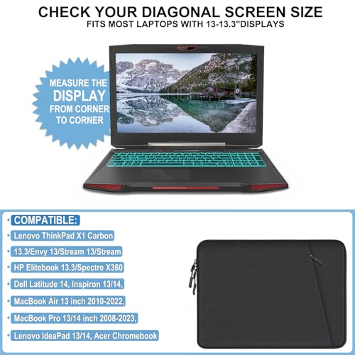 COMPATIBILIDAD: Nuestra funda para portátil es compatible con la mayoría de portátiles de hasta 13-13.3 pulgadas, compatible con MacBook Air de 13 pulgadas 2010-2022, MacBook Pro de 13/14 pulgadas 2008-2023, Dell Latitude 14, Inspiron 13/14, HP Elitebook de 13.3 pulgadas/Spectre X360 de 13.3 pulgadas/Envy de 13 pulgadas/Stream de 13 pulgadas/Stream de 14 pulgadas/Pavilion de 14 pulgadas, Lenovo ThinkPad X1 Carbon, Lenovo IdeaPad 13/14, Acer Chromebook R13/ Spin 5 de 13.5 pulgadas.
