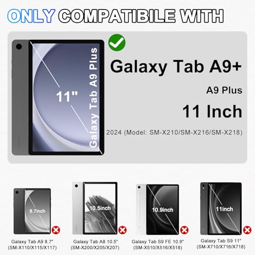Compatibilidad: solo para Samsung Galaxy Tab A9+/ A9 Plus de 11 pulgadas (10.9 pulgadas que representa las esquinas redondeadas), modelo 2023 (SM-X210/X216/X218). No para ningún otro modelo o tableta