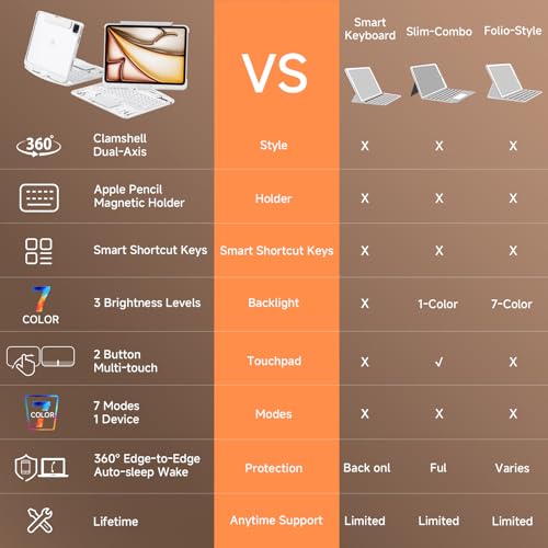 【Escritura iluminada + retroiluminación de 7 colores】: esta funda M4 para iPad Professional 13 con teclado cuenta con un teclado retroiluminado de 7 colores que permite un ajuste de brillo, asegurando una excelente escritura en cualquier condición de iluminación. Incluye un conjunto completo de atajos multimedia iPadOS para un fácil keep an eye on de volumen y música.