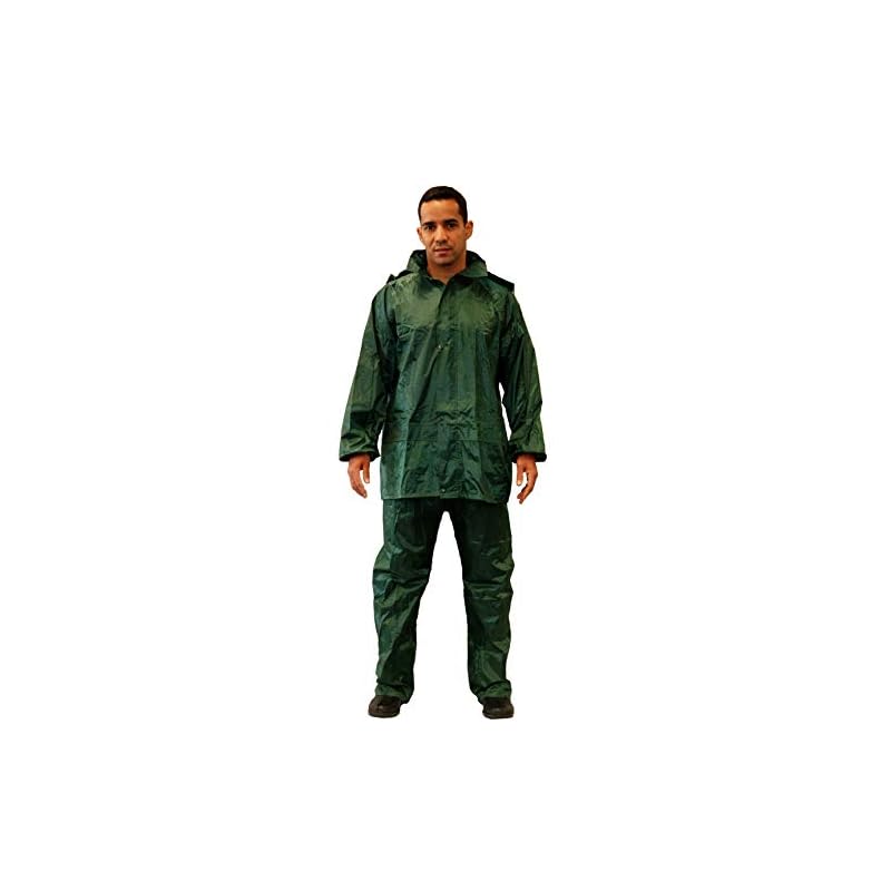 🧵 DISEÑO y TALLAS: Traje impermeable de trabajo elaborado con tejido de Nylon 100% sobre recubrimiento de PVC. La combinación de materiales garantiza la máxima protección contra el agua en un conjunto compacto y ligero, con un grosor de solo 0,18 mm. Incluye goma elástica en la cintura del pantalón y corchetes en mangas y tobillos para ofrecer un ajuste óptimo. Disponible en diferentes tallas.