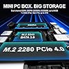 Memoria ampliable: El mini PC GT13 Pro está equipado con memoria RAM de 3200 MHz, que es un 20% más rápida que la RAM de 2666 MHz y admite doble canal, ampliable hasta 64 GB (32+32), y ofrece una unidad SSD PCIe Gen4 de 1 TB (más rápida que Gen3 40%). Además, cuenta con 1 ranura M.2 2242 SATA SSD, ampliable hasta 1 TB. Garantiza el funcionamiento fluido de grandes aplicaciones, bases de datos y virtualización y ofrece una experiencia de usuario excepcional