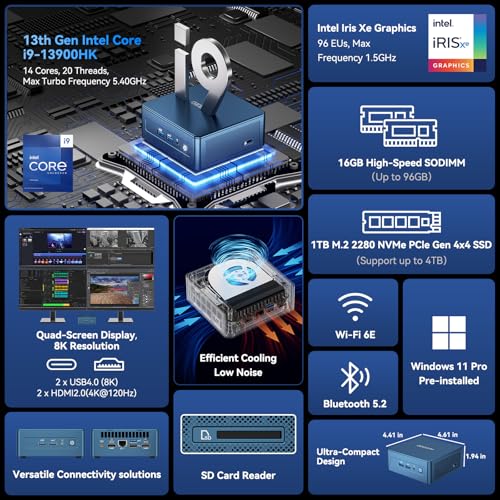 Especificaciones: GEEKOM Mini PC IT13 Edición 2026 con Intel 13ª generación i9-13900HK, 16 GB de RAM (no LPDDR) y 1 TB NVMe SSD (expandible), NUC13 Mini computadora de escritorio Windows 11 Pro para hogar y oficina |