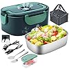 Gentre Fiambrera Electrica 4 en 1 12V/24V/220V~240V Calentador de Comida Portatil con Termo para Coche Camión y Trabajo 1.5L 60W en Acero Inoxidable con Tartera Bolsa Térmica y Juego de Cubiertos
