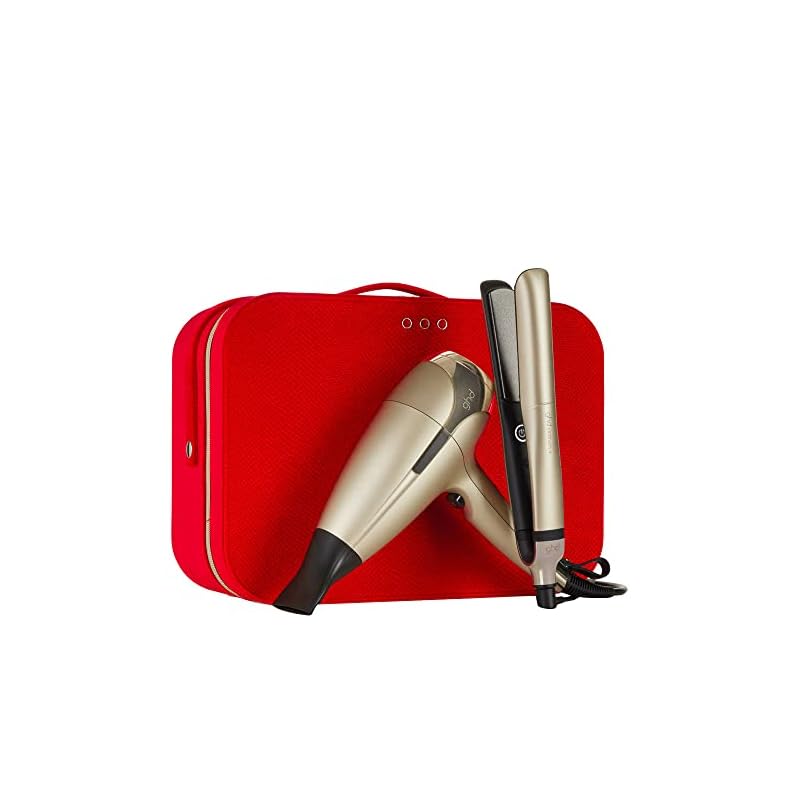 ghd deluxe Grand-Luxe Collection – Set de regalo plancha de pelo platinum+ y secador de pelo profesional helios, edición 2022, oro champagne