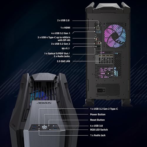 GIGABYTE AORUS – PC de escritorio para juegos, AMD Ryzen 7 9800X3D, AORUS RTX 5090, 64GB DDR5 RAM, SSD Gen5 NVMe de 2 TB, Windows 11 Home, AORUS Supreme 5 AS5A7N9-5000