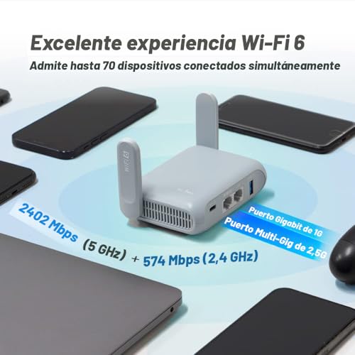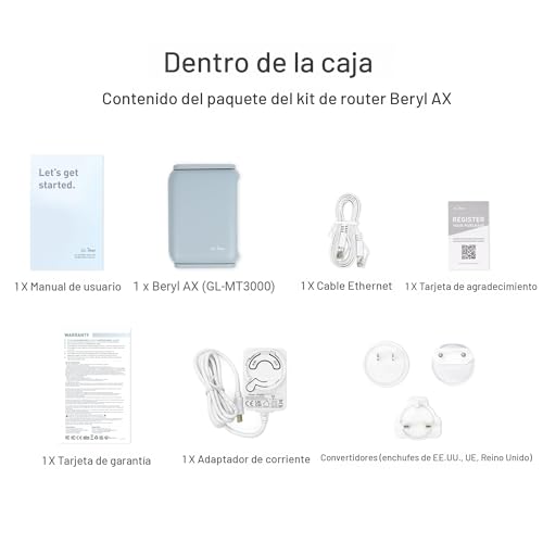 【ROUTER WIFI PORTÁTIL PERFECTO PARA VIAJES】El Beryl AX es un dispositivo Wi-Fi de bolsillo perfect, perfecto para viajes internacionales. Con su tamaño compacto y características aptas para viajes, el router Wi-Fi portátil es el compañero perfecto para viajeros que necesitan una conexión a Web segura en movimiento.