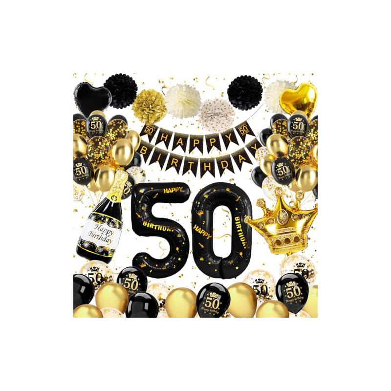 Especificaciones: Globos 50 Cumpleaños Negra Oro, Decoración Cumpleaños 50 Años Hombres Mujer, Globos de Cumpleaños 50 Años con Pancarta Feliz Cumpleaños para Decoracione 50 Fiesta Cumpleaños Hombres Muje