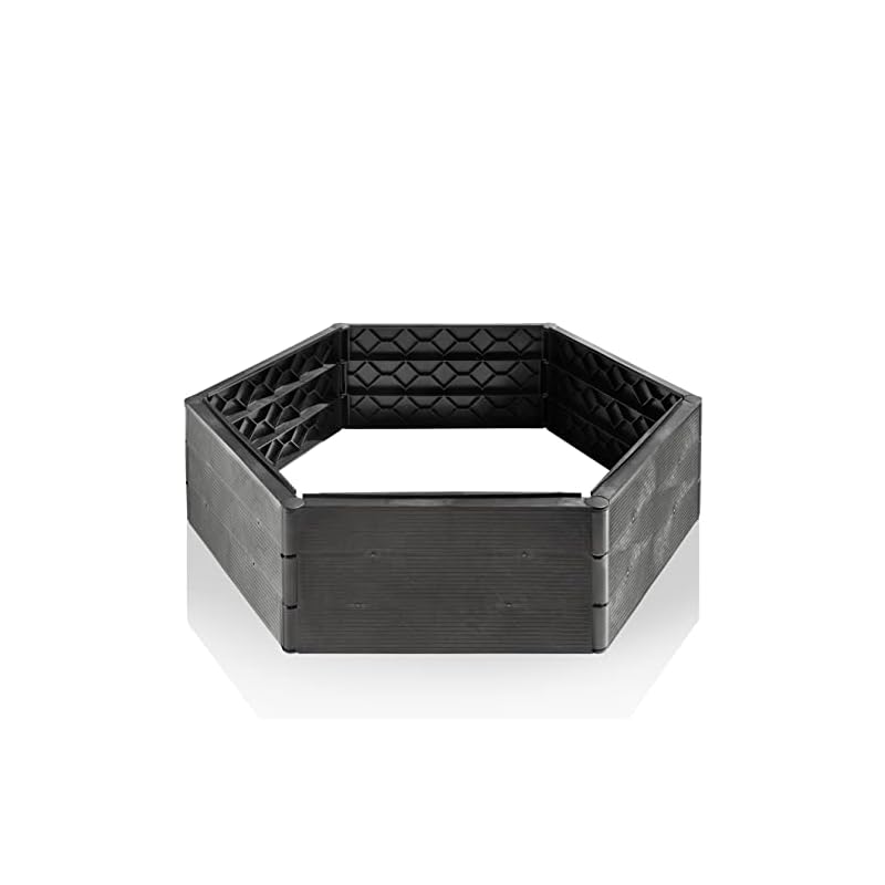 MONTAJE – El lecho de hierbas es fácil de montar sin herramientas y se puede llenar inmediatamente. Durante el montaje, las esquinas se pueden ajustar en tres posiciones, por lo que el lecho vegetal se puede colocar no sólo en un hexágono, sino también en un cuadrado o rectángulo en combinación con varios conjuntos.