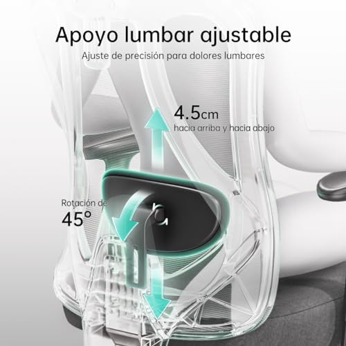 Cómodo soporte lumbar 2D: El soporte lumbar ajustable 2D de la silla ergonómica Hbada P3 proporciona protección lumbar y elimina las tensiones en la parte baja de la espalda.