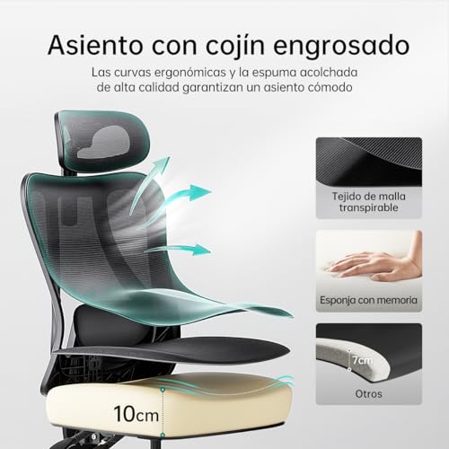 Especificaciones: Hbada P3 Silla Ergonomica Escritorio, Silla Oficina Soporte Lumbar, Silla de Ordenador reclinable de ángulo Grande, Respaldo de Malla elástica, Negra