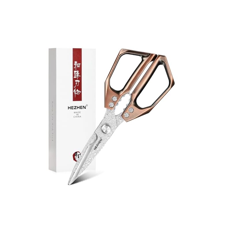 HEZHEN Tijeras de Cocina Damasco, Tijeras de Cocina Acero Damasco, Tijeras de Cocina Profesionales Multifunción, Tijeras para el Hogar con Corte de Sierra, Mango de Aleación de Aluminio