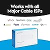 CERTIFICADO para trabajar con Comcast Xfinity, Comcast Xfinity Business, Charter Spectrum, Cox Gigablast, CableOne Sparklight, Cogeco Breezeline y Zito Media. También funciona con Astound, Grande, RCN y Wave. Consulte el sitio web de su proveedor de servicios de Internet (ISP) para confirmar la compatibilidad.