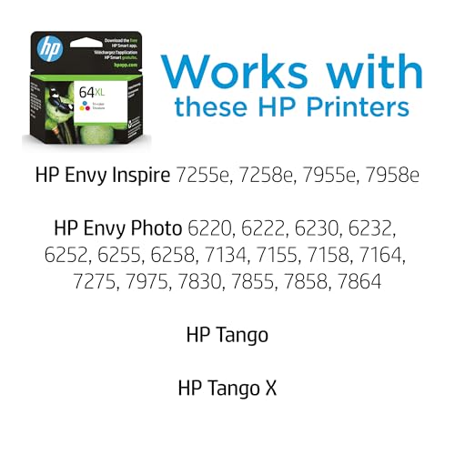 Especificaciones: HP 64XL N9J91AN Cartucho de tinta tricolor de alto rendimiento, funciona con HP ENVY Inspire 7950e, ENVY Photo 6200, 7100, 7800, serie Tango, elegible para tinta instantánea