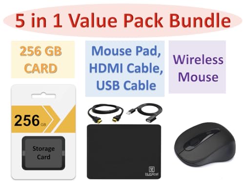 Accesorios: Hubxcel autorizadoAccesorios: Paquete económico 5 en 1: incluye tarjeta de almacenamiento de 256 GB, alfombrilla de ratón, cable HDMI, cable USB y mouse inalámbrico