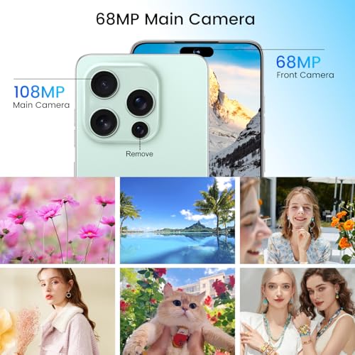【6.99 HD + Android 14.zero】 Este es un teléfono celular Android con una pantalla grande, pantalla HD de 6.99 pulgadas + 3040 x 1440. Este teléfono Android 14.0 I16PROMAX desbloqueado está equipado con una cámara frontal de 68 MP y una cámara fundamental de 108 MP, grabación mejor una vida hermosa y muestra tu belleza. Y tiene reconocimiento facial y desbloqueo de botón de huellas dactilares y botón rápido para tomar fotos, lo que protege eficazmente tu privacidad.