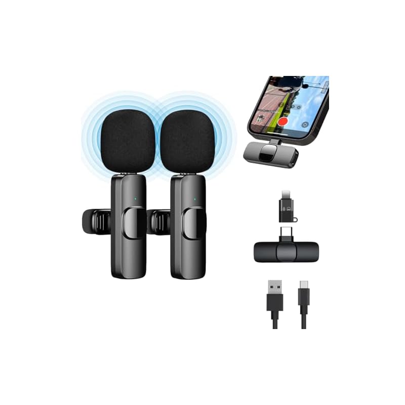 Especificaciones: ICOVERI Micrófono Inalámbrico para iPhone, Android, iPad, Plug&Play, Pack 2 Micrófonos Profesionales de Solapa portátil, para Grabación de Video, Youtube, Twitch, TikTok, Vlog, Podcast, en Vivo.