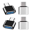 iJiGui Adaptador USB C a USB (4 Piezas), Adaptador OTG USB-C Macho a USB-A 2.0 Hembra Compatible con MacBook Pro, Samsung Galaxy, Teléfonos Tipo-C(Negro + Plata)