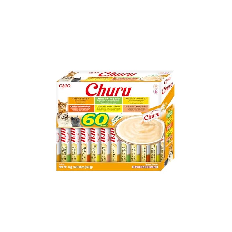 INABA Churu Box – Premios para Gatos – Snacks Saludables a Base de Pollo, Varios Sabores – Textura Cremosa – Sin Cereales, Conservantes, Colorantes – 60x14g