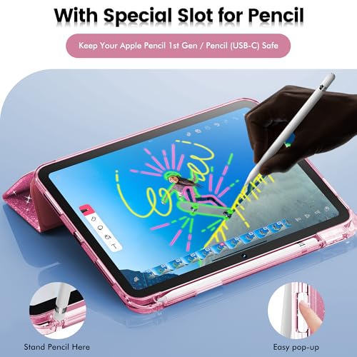 Sparkle Glitter Transparent: combinación de cubierta de cuero brillante con purpurina y carcasa trasera brillante brillante, esta funda para iPad de 11ª generación se centra en enfatizar L. a. belleza de su iPad mientras tiene una sensación de individualidad, especialmente para niñas, mujeres o niños lindos.