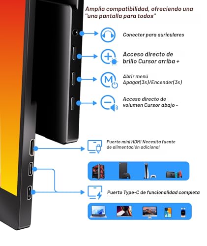 [Conexión rápida y sin problemas] Utilizando l. a. última tecnología USB-C, el Screen de viaje Ingnok proporciona transferencia de datos y fuente de alimentación a través de un solo cable. Appropriate con varios dispositivos, incluyendo computadoras portátiles, Mac, PC y juegos