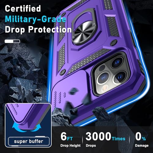 Janmitta Funda para iPhone 16, funda integrada para lente de cámara deslizante + protector de pantalla, resistente a los golpes, funda de cuerpo completo con soporte de anillo para el dedo, morado