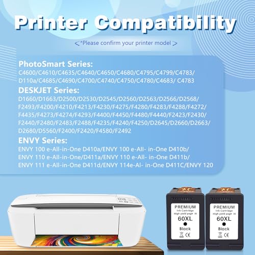 Calidad de impresión confiable: Todos estos cartuchos de tinta 60XL están con el chip de alta precisión y estrictamente probados con procesos de control de calidad de la industria. Asegúrese de obtener excelentes resultados en su impresora