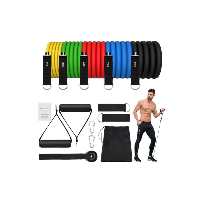 Nuestra resistance bands set está hecha de látex natural 100% que tiene alta elasticidad, Buena resistencia al desgaste, cómodo y duradero. Además viene con correas de tobillo suaves y resistentes, y con asas acolchadas robustos y antideslizantes
