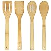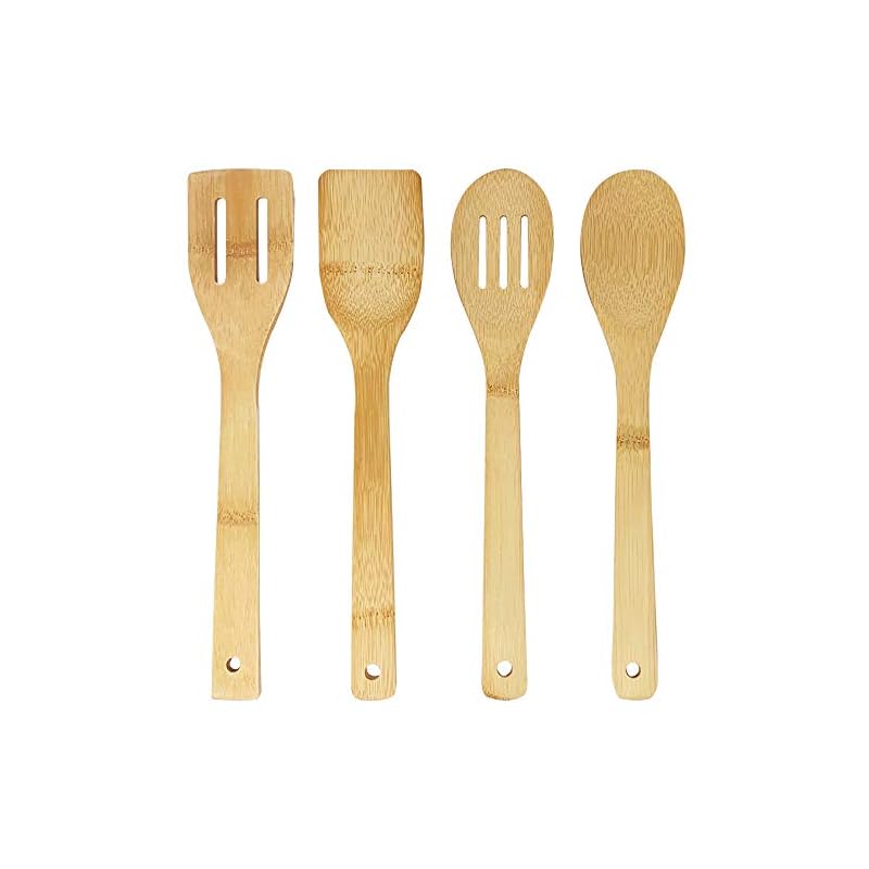 Joeji’s Kitchen 4 Utensilios de cocina de madera de bambú Utensilios de cocina madera para cocinar 4 utensilios de bambú resistentes y elegantes Cuchara de Madera Espátula de bambú cuchara ranurada