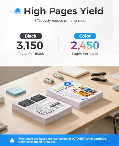 La última versión de chip: los cartuchos de tóner JCTONER están equipados con la última versión de chips integrados, lo que garantiza una compatibilidad perfecta entre cada cartucho de tóner y la impresora. Esto le permite imprimir de manera eficiente mientras mantiene la estabilidad y la fiabilidad, lo que hace que la instalación sea conveniente sin necesidad de ajustes manuales. Todos los cartuchos de tóner JCTONER han sido sometidos a estrictas pruebas de calidad y han obtenido la certificación ISO9001. Los cartuchos de tóner de alta calidad pueden satisfacer la demanda de alto volumen de impresión. El tóner fino garantiza resultados de impresión claros y sin manchas y prolonga la vida útil de la impresora. Puedes comprar con confianza.