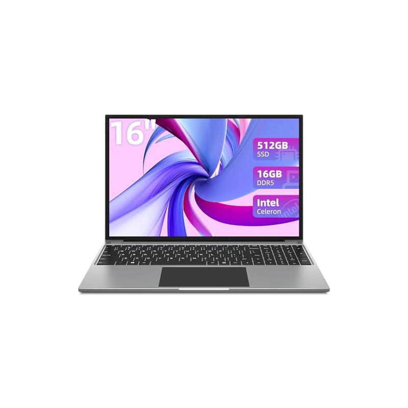 JUMPER Ordenador Portatil, 16GB RAM 512GB SSD, 16 Pulgadas FHD PC Portatil, Celeron hasta 3,4 GHz, Caché 4M, 1920 * 1200 IPS, 2.4G+5G WiFi, USB3.0Ã2, Bluetooth 4.0, Gris Laptop