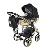 Especificaciones: Junama – Cochecito combinado 2 en 1 3 en 1 4 en 1 con accesorios originales Prams (4 en 1 (con base ISOFIX), color negro y dorado