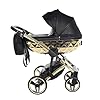 Junama – Cochecito combinado 2 en 1 3 en 1 4 en 1 con accesorios originales Prams (4 en 1 (con base ISOFIX), color negro y dorado