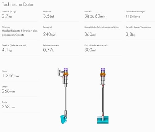Especificaciones: JUNG Dyson V15 Detect – Aspiradora submarina inalámbrica con batería, filtro HEPA, aspiradora de mano inalámbrica sin bolsa, incluye paños para el cuidado del suelo, color azul y cobre